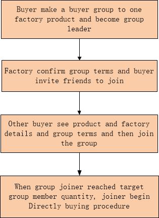 1.Buyer make a buyer group to buy one factory product and set up group buy price,group member quantity and commission rate wanted from factory, so buyer become group leader.